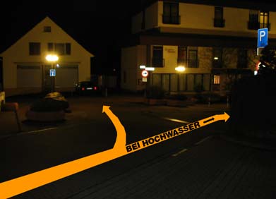 - Wenn kein Hochwasser ist: Sofort wieder links in die Nahestraße abbiegen. Sonst weiter bei "10. Hochwasser:". (siehe Bild 2 unten)